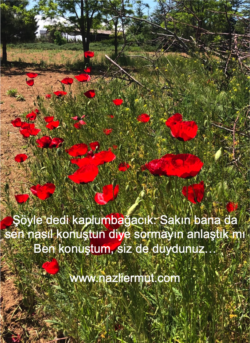 Sonra yeşil yaprakların arasına usulca oturdu. Oturamaz mı kaplumbağa dediniz, hadi oradan, size göre oturamaz olabilir, ama ben otururum. Evet oturdu ve gelinciklerin kokusuyla kendinden geçti adeta. Kokmaz mı gelincik, yapmayın Allah aşkına. Ne dediniz, kaplumbağalar koklayamaz mı? Kim demiş.