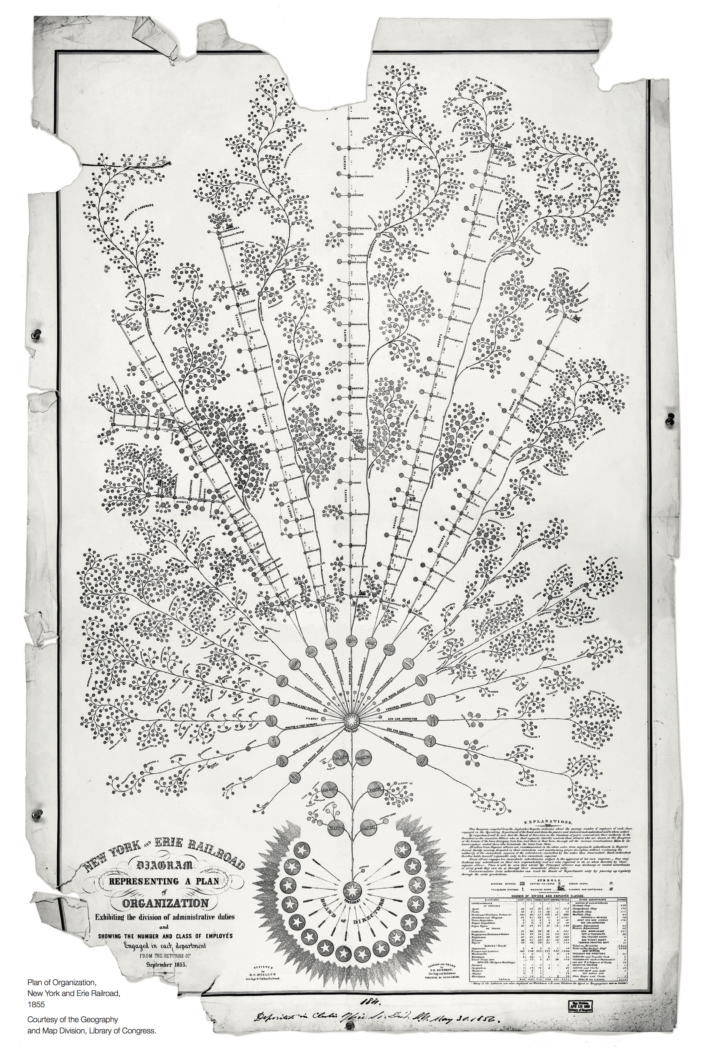 Bazen tıpkı Erie Demiryolu şirketinde olduğu gibi gerçekten yapılan işe, kurumun gelişimine yönelik bir amacı olur organizasyon şemalarının. Bu amaçla çizilen şemalar adeta yaşayan, nefes alan şemalardır. Bir nefes de onlar katarlar kurumun yaşamına.